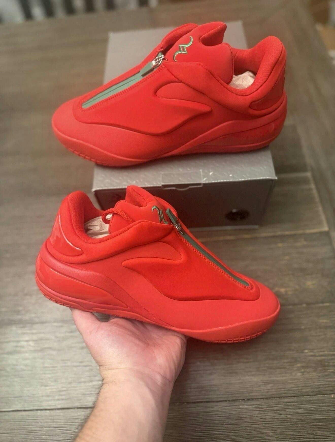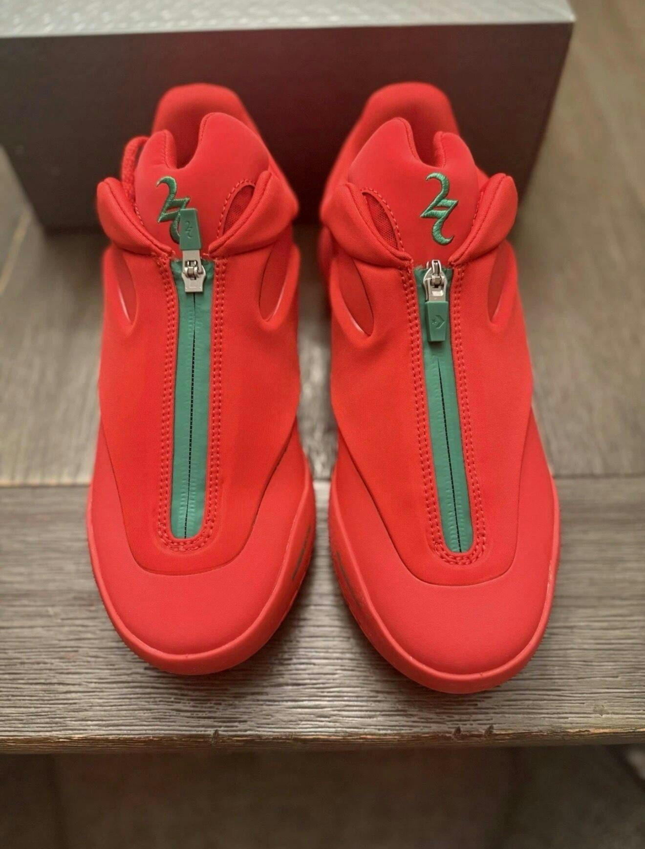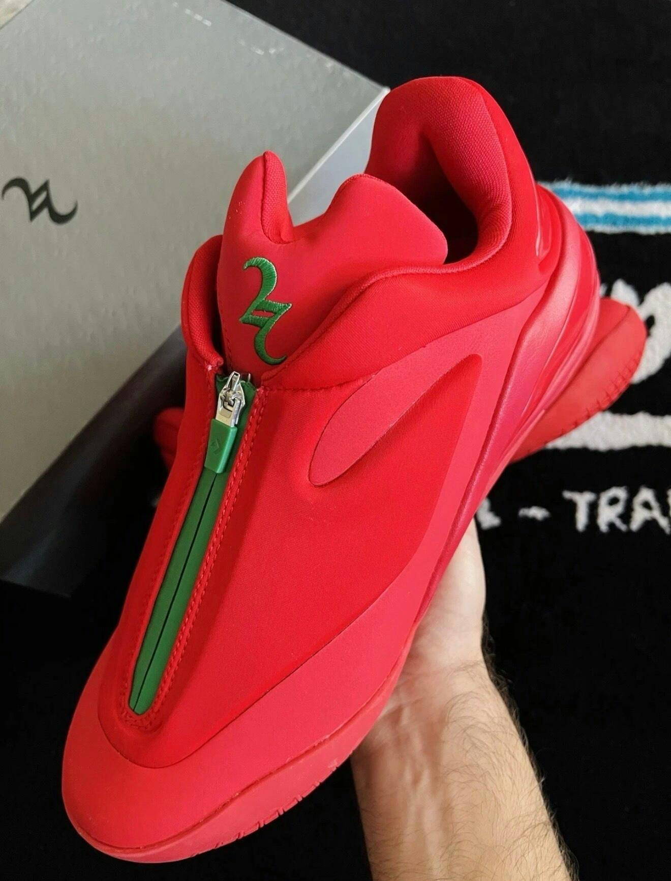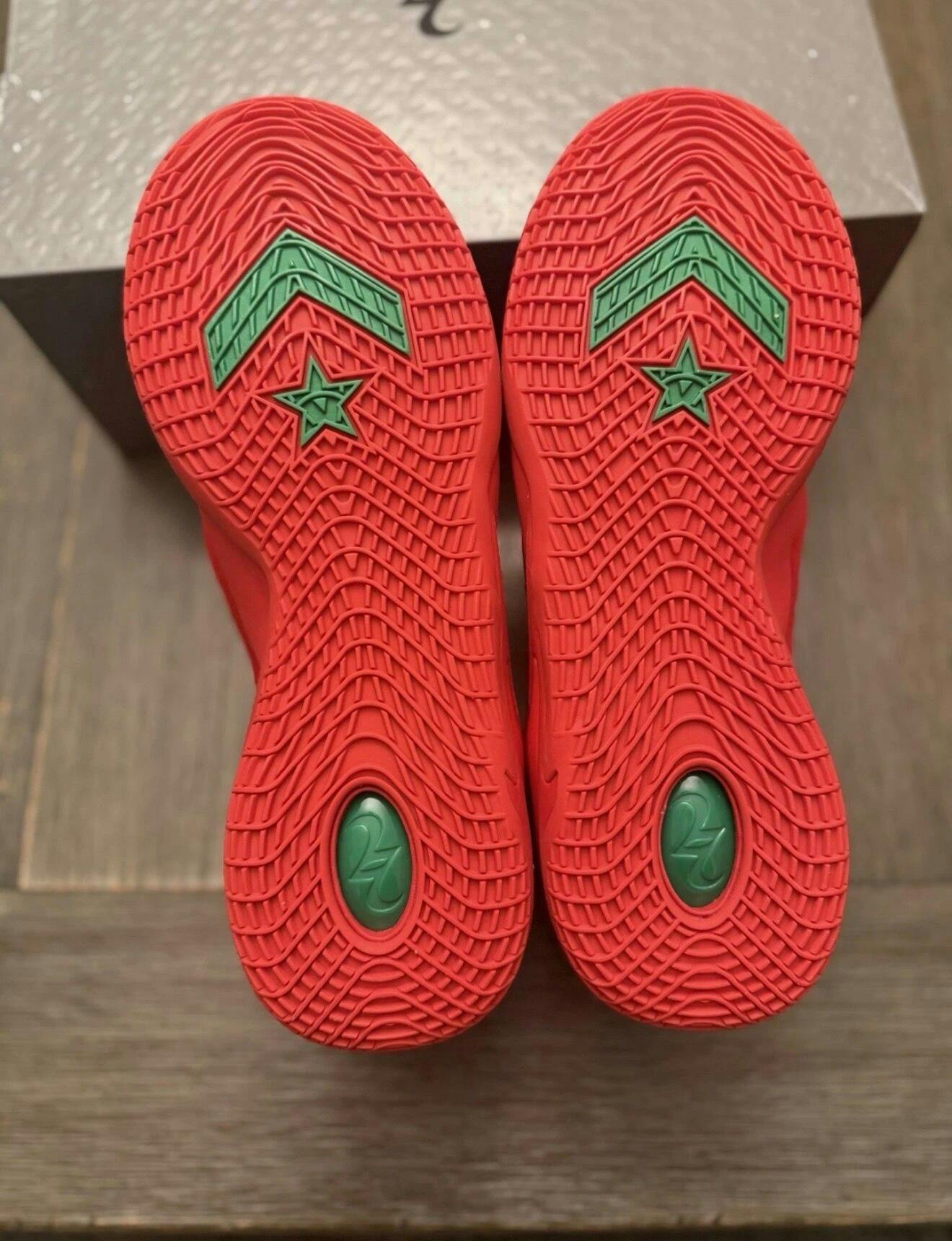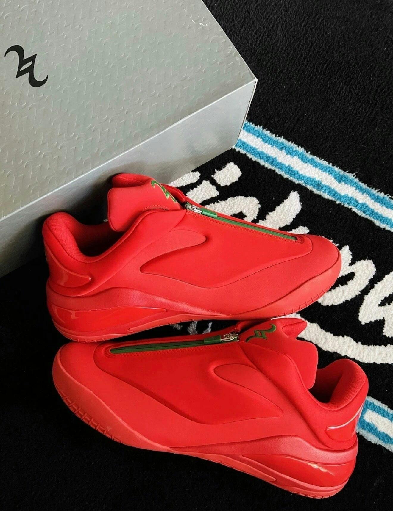 The Winter Red Basketball Sneaker (2025) features a bold red and green colorway designed to stand out on the court. Built with a synthetic upper, the shoe offers a lightweight feel with durability suited for game-day performance.