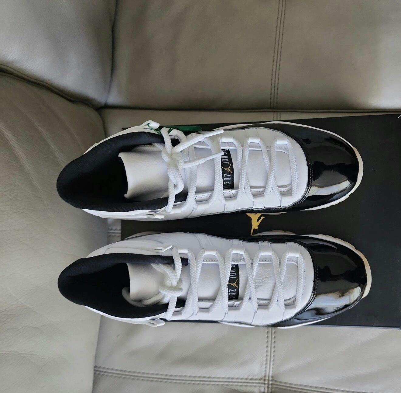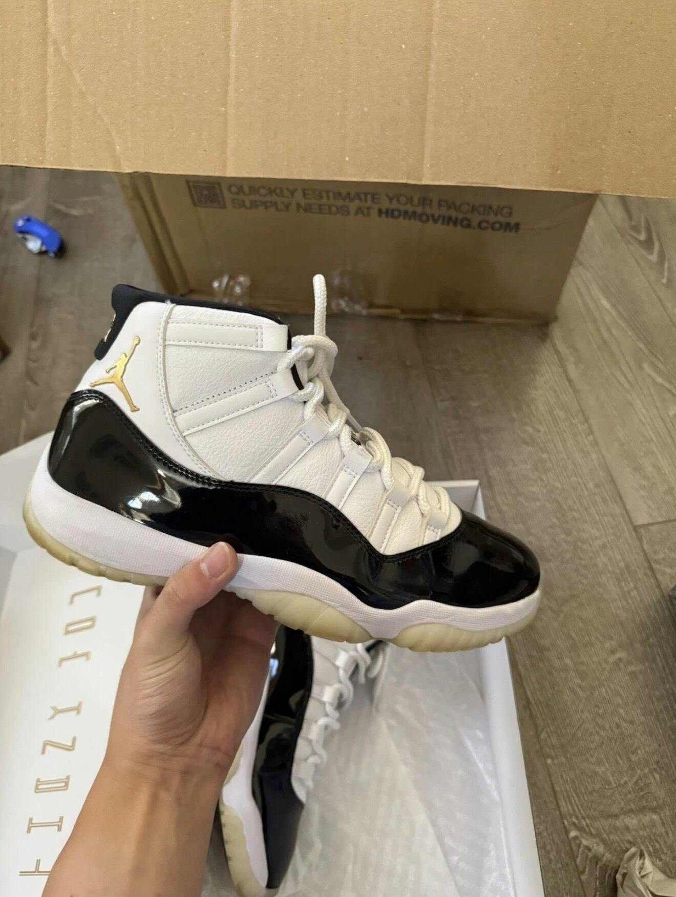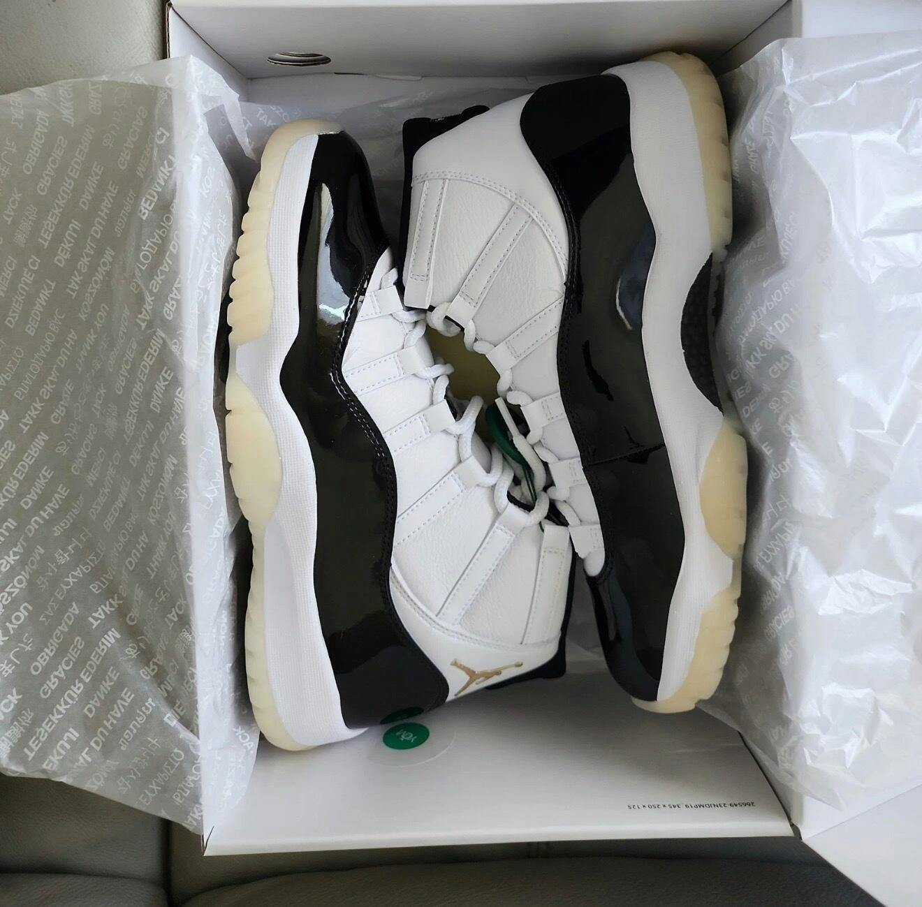 Brand: Air Jordan Designer: Michael Jordan / Tinker Hatfield Model: Air Jordan 11 Retro Nickname: Colorway: White / Black - Metallic Gold Season: Spring / Summer / Fall / Winter Release Date: 2023-12-09 Age Group: Adult Gender: Men's Category: Footwear / Sneakers Activity: Basketball / Gym & Training / Walking / Casual Shaft Height: Mid Top Closure: Lace Up