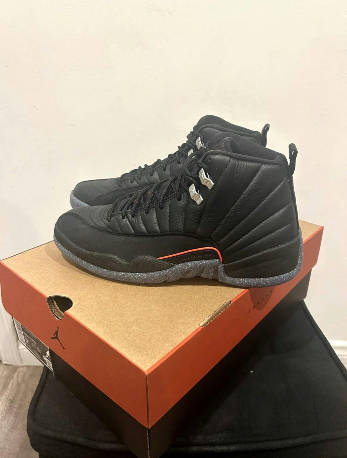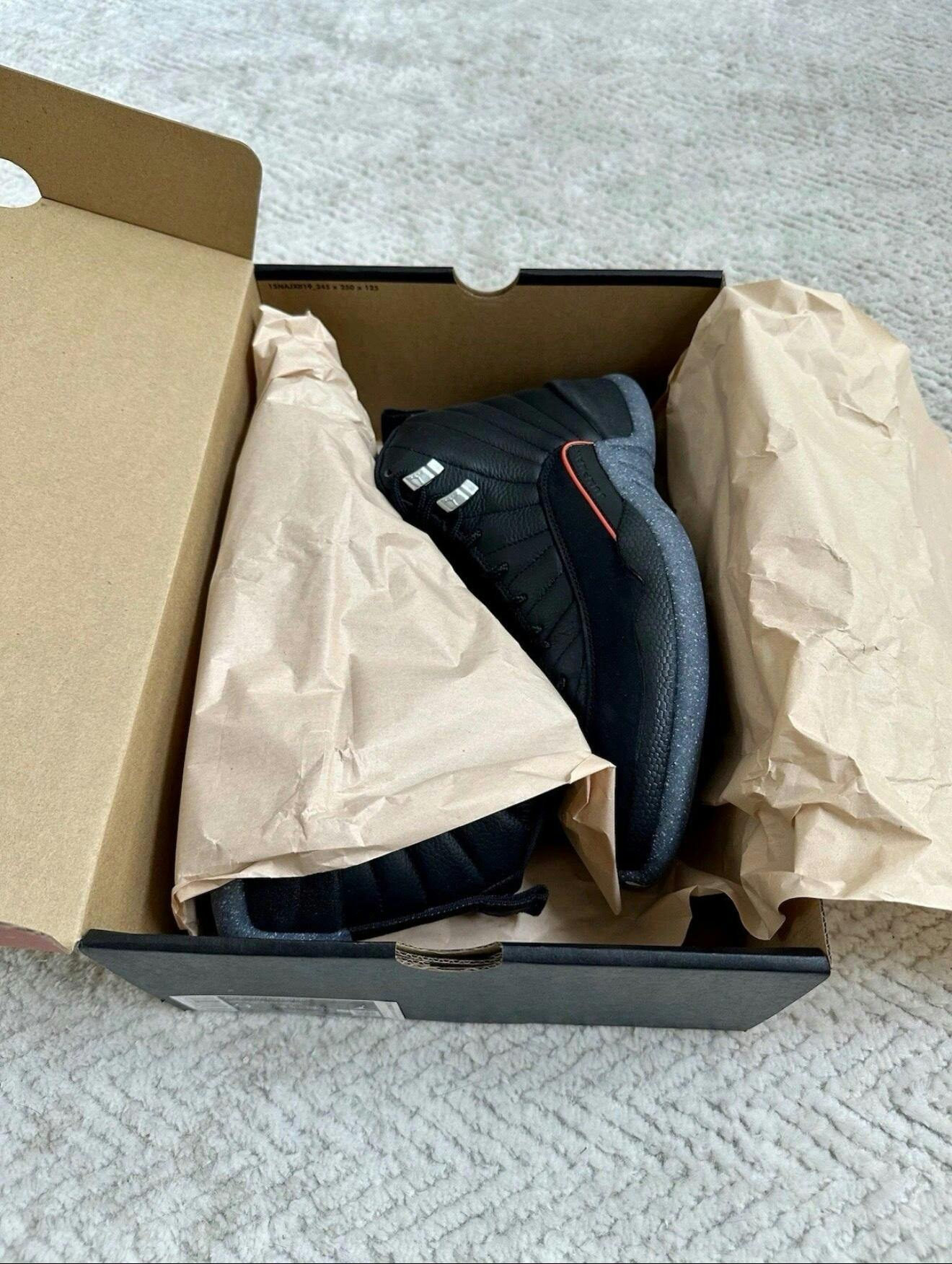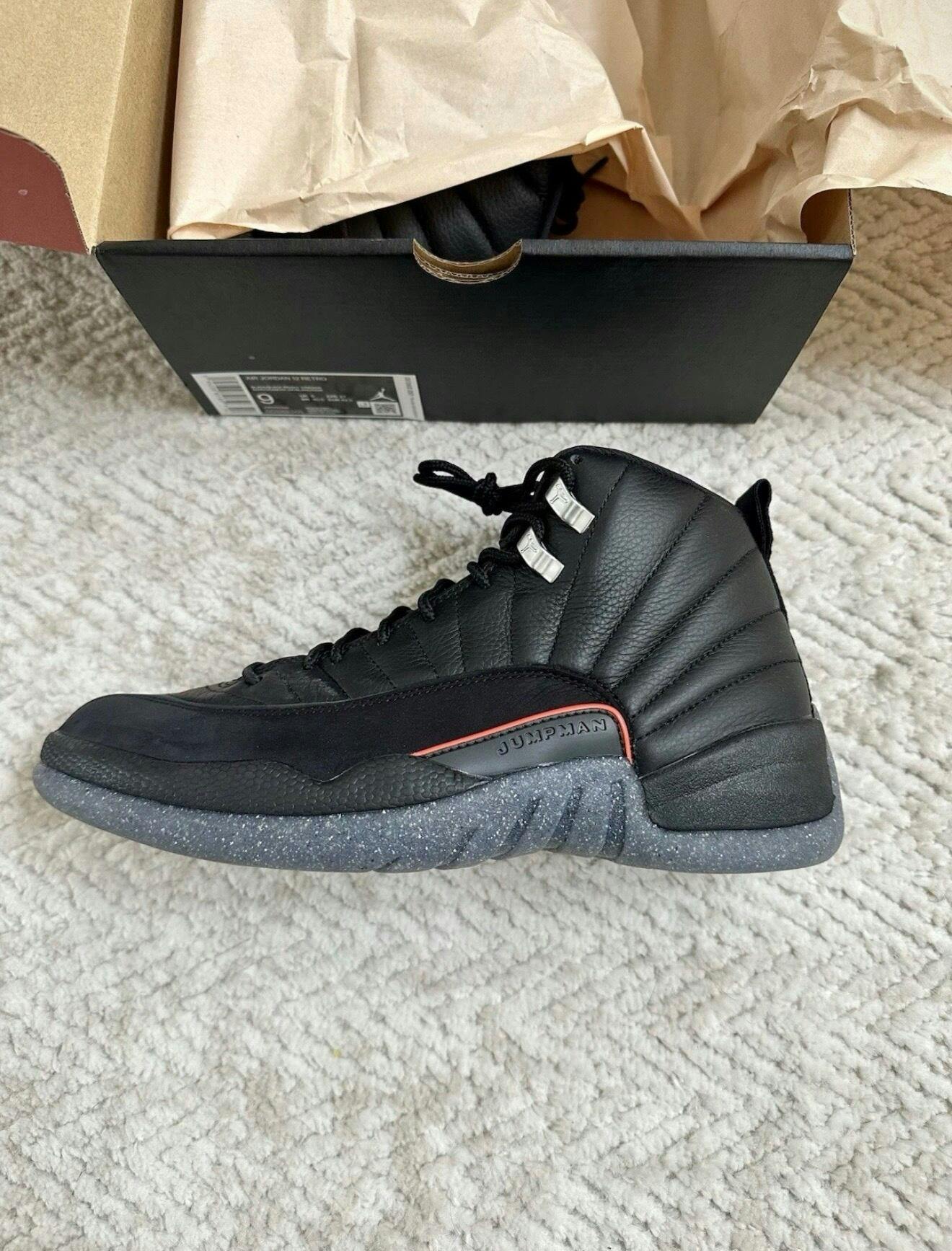 The Air Jordan 12 Utility Grind updates a classic silhouette with modern materials and sustainable design elements. Featuring a combination of tumbled black leather and soft suede overlays, this sneaker offers a textured, layered look. The tongue is made of durable ballistic mesh and showcases a tonal Jumpman logo with a subtle red outline. A unique detail of this model is the speckled rubber midsole, which includes at least 3% Nike Grind material made from recycled footwear production waste. The signature lizard-print texture is applied to the Phylon midsole, while Zoom Air cushioning underfoot ensures responsive comfort for daily wear.