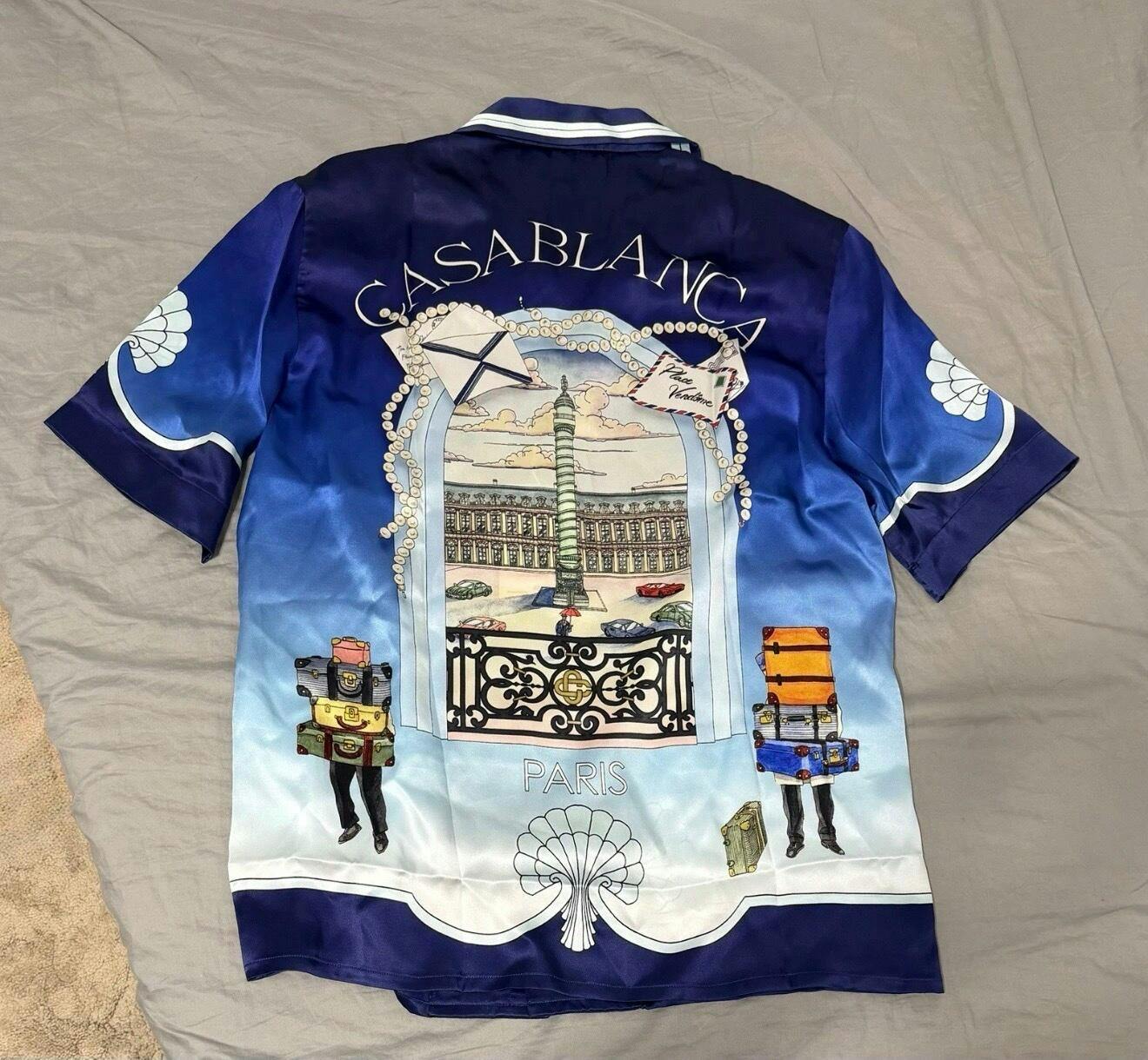 Featuring a classic Cuban collar and short sleeves, this shirt offers a timeless silhouette with subtle Casablanca detailing, giving it a distinctive yet understated look. Its relaxed fit ensures comfort for casual outings, dinners, or vacation settings.