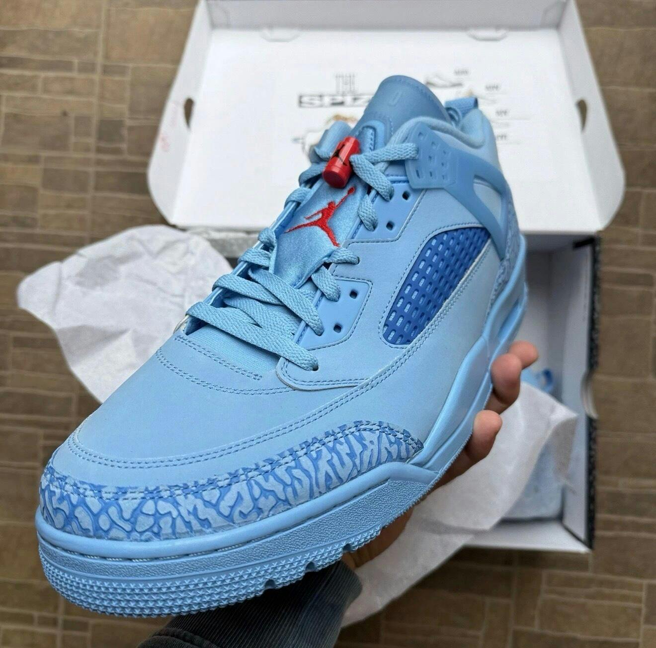 This sneaker, known by its Houston Oilers nickname, features a bold color combination of Football Blue, Fountain Blue, and University Red. The upper is constructed from soft nubuck material, offering both texture and a premium look. The design pays subtle tribute to a classic sports aesthetic, with vibrant red and blue tones standing out across the upper and detailing. Underfoot, Air cushioning technology is built into the midsole to support comfort and impact absorption. A durable rubber outsole completes the structure for everyday wear. Key Features Nickname: Houston Oilers Color: Football Blue / Fountain Blue / University Red Upper Material: Nubuck Air cushioning for comfort and support Rubber outsole for durability and traction Lace-up closure
