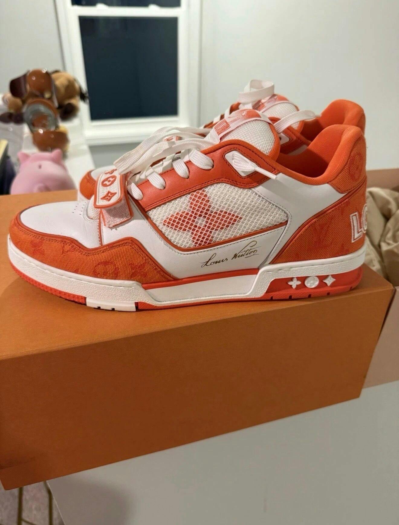 Louis Vuitton Trainer Low Velcro Orange Monogram Denim