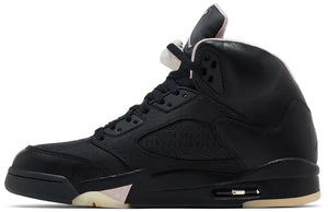 The Paris Saint-Germain x Air Jordan 5 Retro “Off Noir” merges classic Air Jordan 5 design with PSG-inspired detailing. The sneaker features a blacked-out upper combining smooth leather with ripstop textile on the midfoot overlay and toe box.