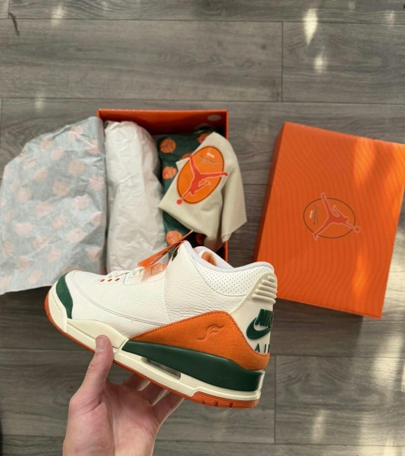 The SoleFly x Air Jordan 3 Miami brings a vibrant, tropical-inspired colorway to the classic Jordan 3 silhouette. Featuring a premium leather upper, the shoe combines bright, Miami-themed colors with the signature elephant print overlays for a bold, eye-catching look.
