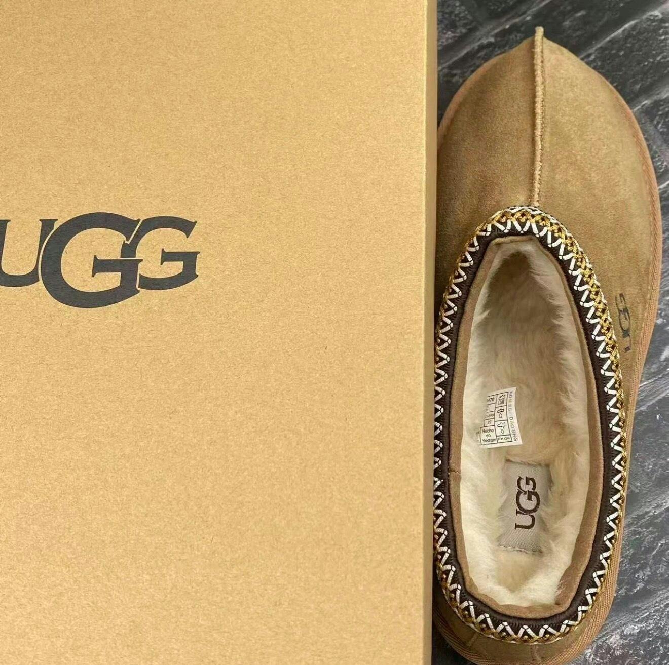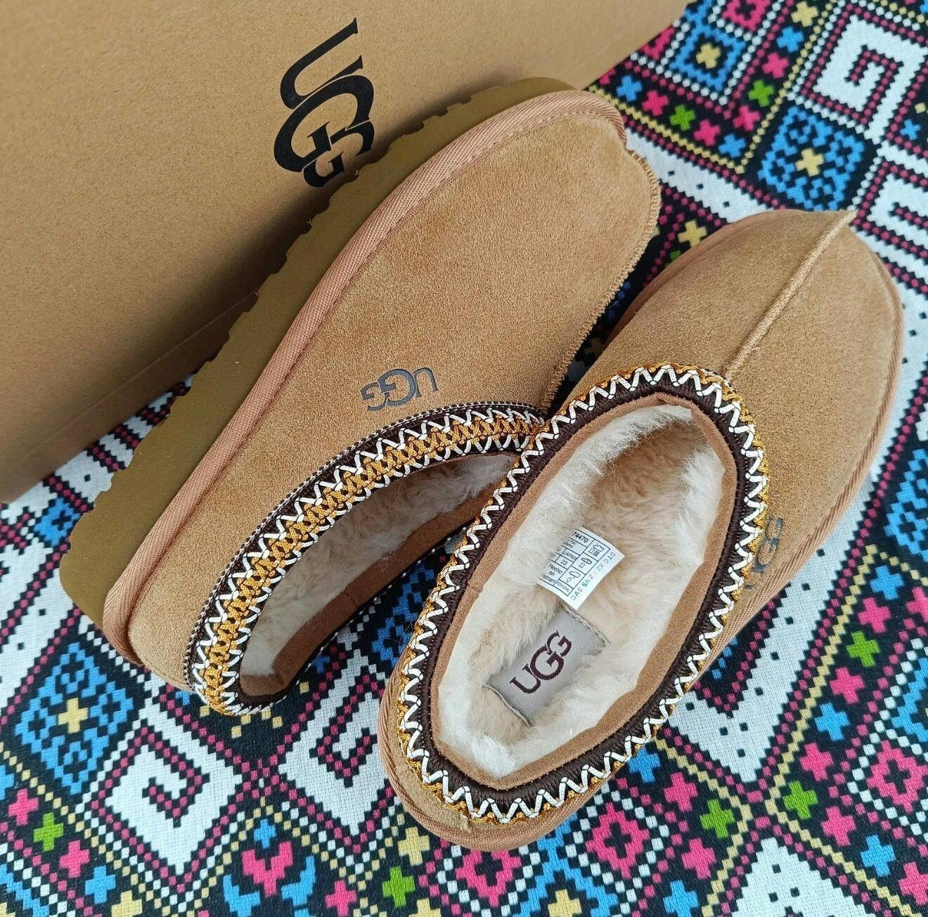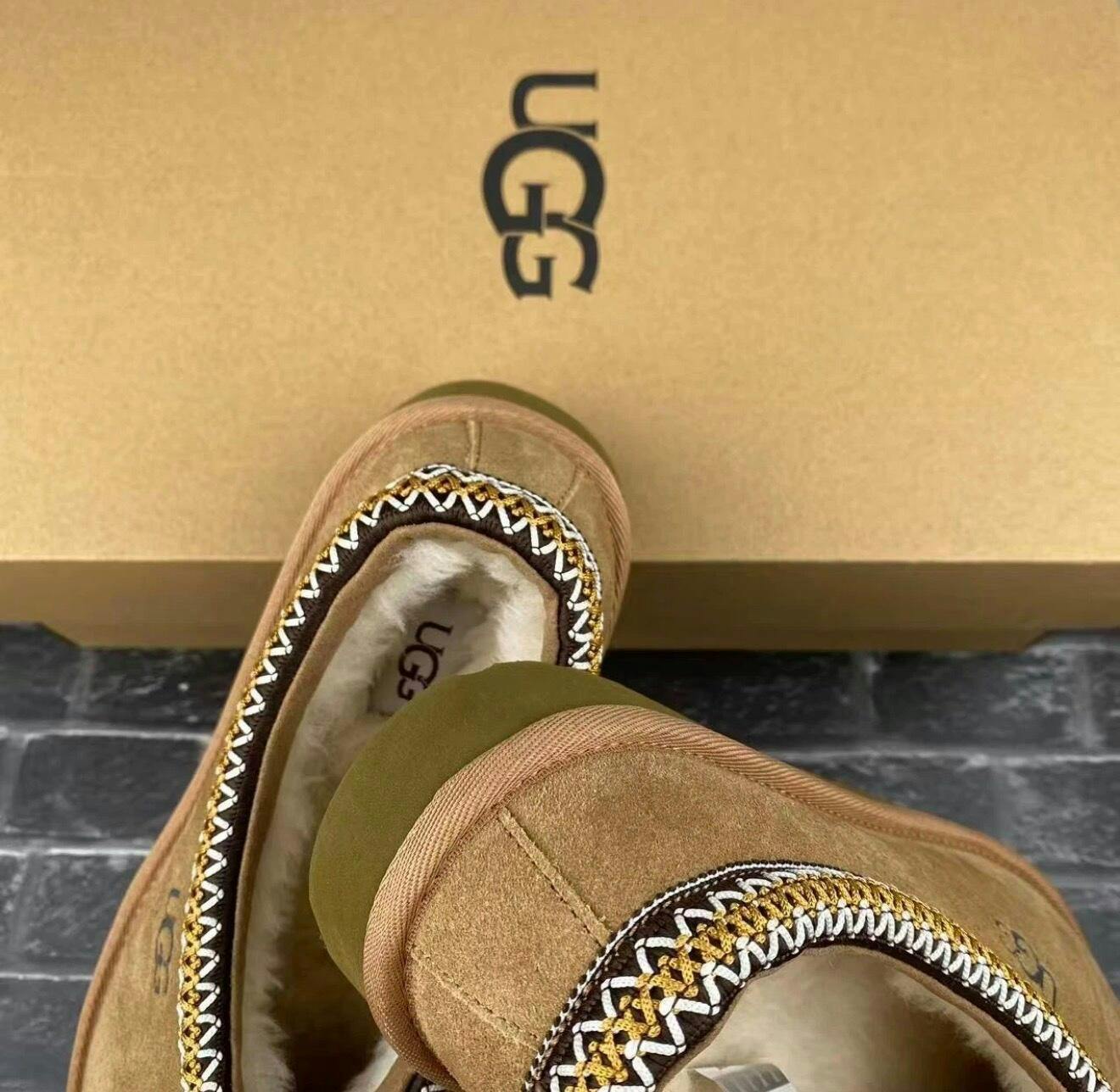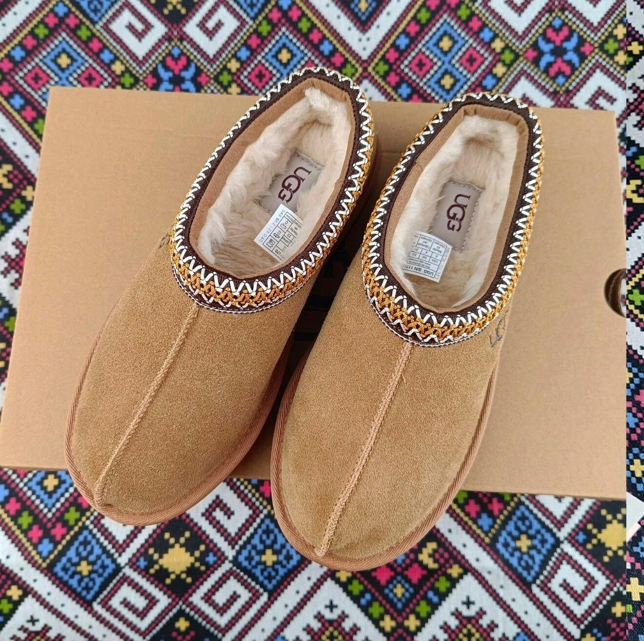 The UGG Women’s Tasman Slipper Chestnut combines classic style with everyday comfort. Built with a dark tan suede upper and detailed center stitching, it features a bound collar made from 100% recycled polyester. Inside, the slipper is lined with UGGplush™, a soft blend of upcycled wool and lyocell, offering warmth and moisture-wicking comfort. A lightweight EVA midsole provides cushioning, while the slip-on design makes it easy to wear indoors or outdoors. Subtle branding includes a heat-embossed UGG logo on the side.